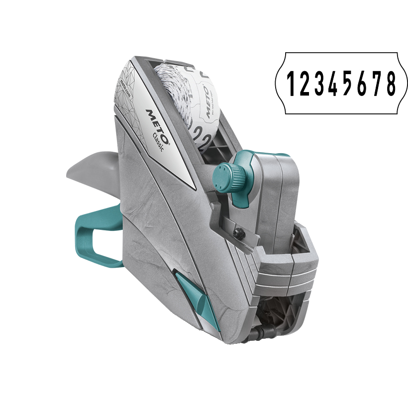 Cette étiqueteuse de prix donne une impression de 8 caractères. Vous cherchez la variante avec étiqueteuse de prix de ce modèle ? Dans ce cas, vous êtes probablement à la recherche de ce Meto Classic S 826.