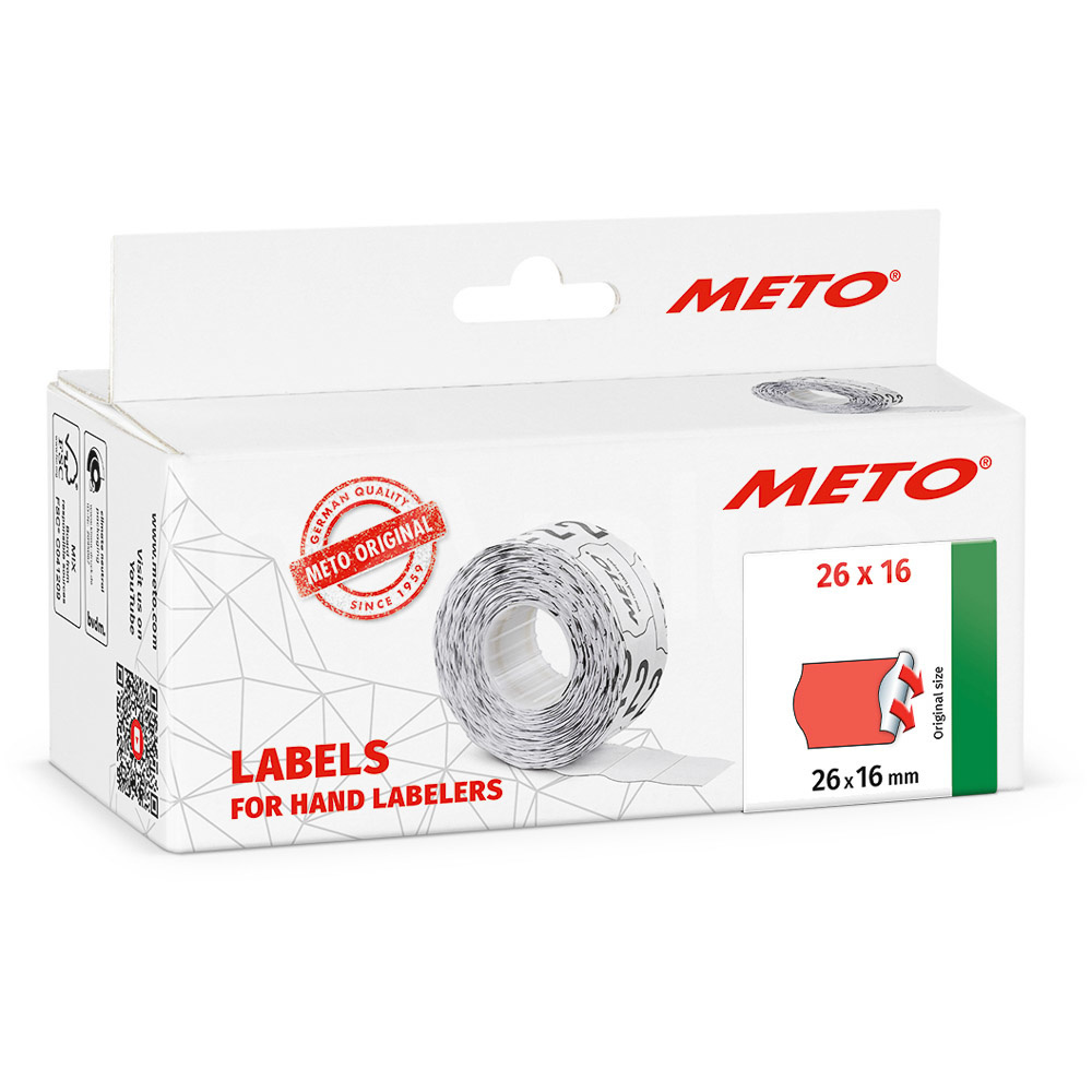 Ces étiquettes Meto Classic mesurent 26 mm de large et 16 mm de haut. Elles sont donc parfaites pour la série Meto Classic M. Il s'agit d'étiquettes Meto originales de qualité allemande.