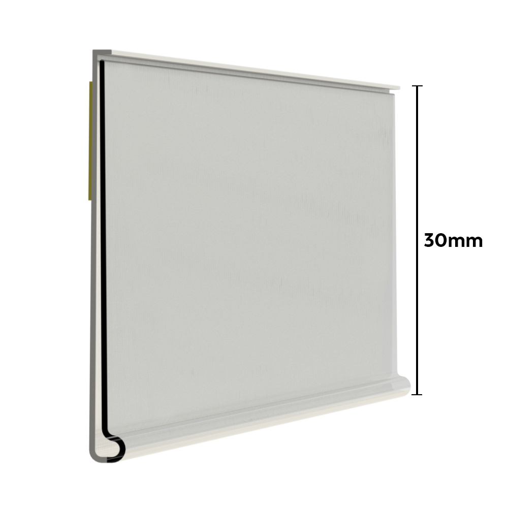 Een scannerprofiel, prijskaartrail of scannerrail, hoe u het ook noemt; ze zijn onmisbaar en veel gebruikt door retailers Dit scannerprofiel is uitgerust met een stofbescherming zodat de schapkaart altijd goed leesbaar blijft. Deze scannerprofielen hebben een maximale inschuifhoogte van 30mm. Dat betekent dat ze geschikt zijn voor schapkaarten met een maximale hoogte van 30mm.